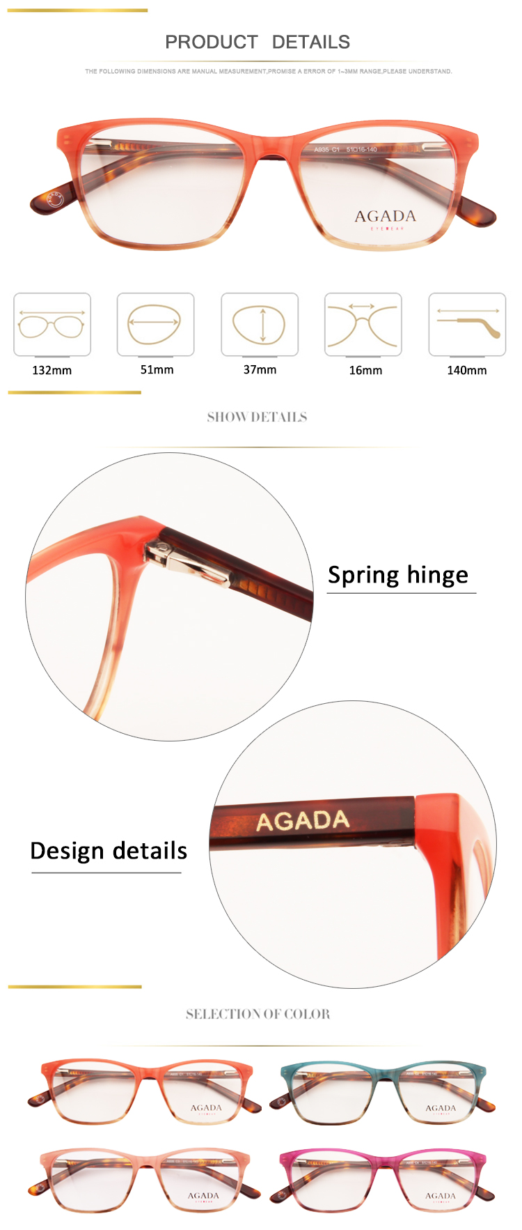 HD Acetate Eyeglasses for Women (A901)
