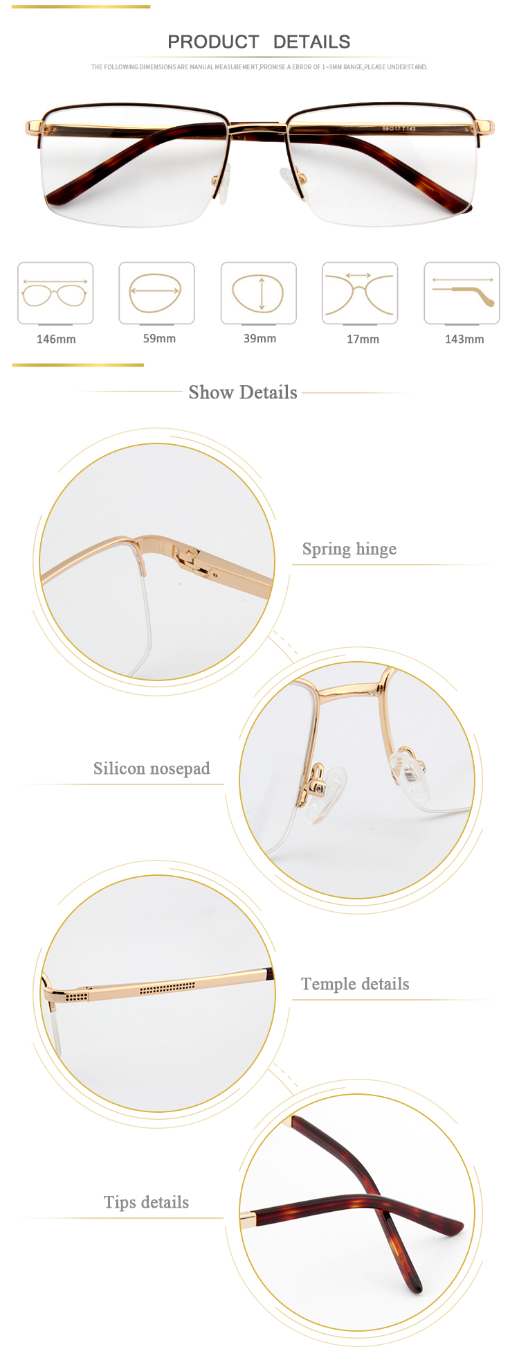 Men Classic Metal Half Frame Eyeglasses (M4048)