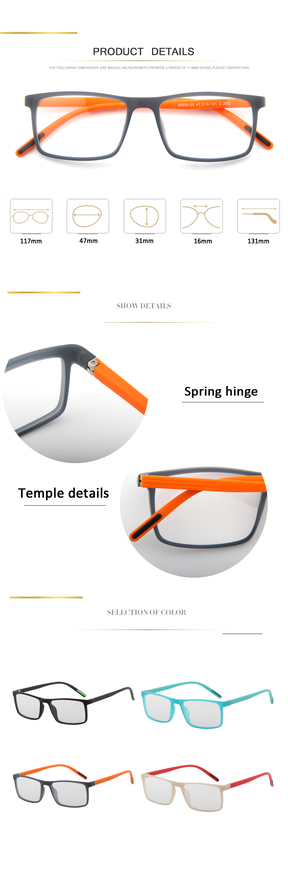 Newest Rectangle TR90 Kids Optical Frames(MC01-16)