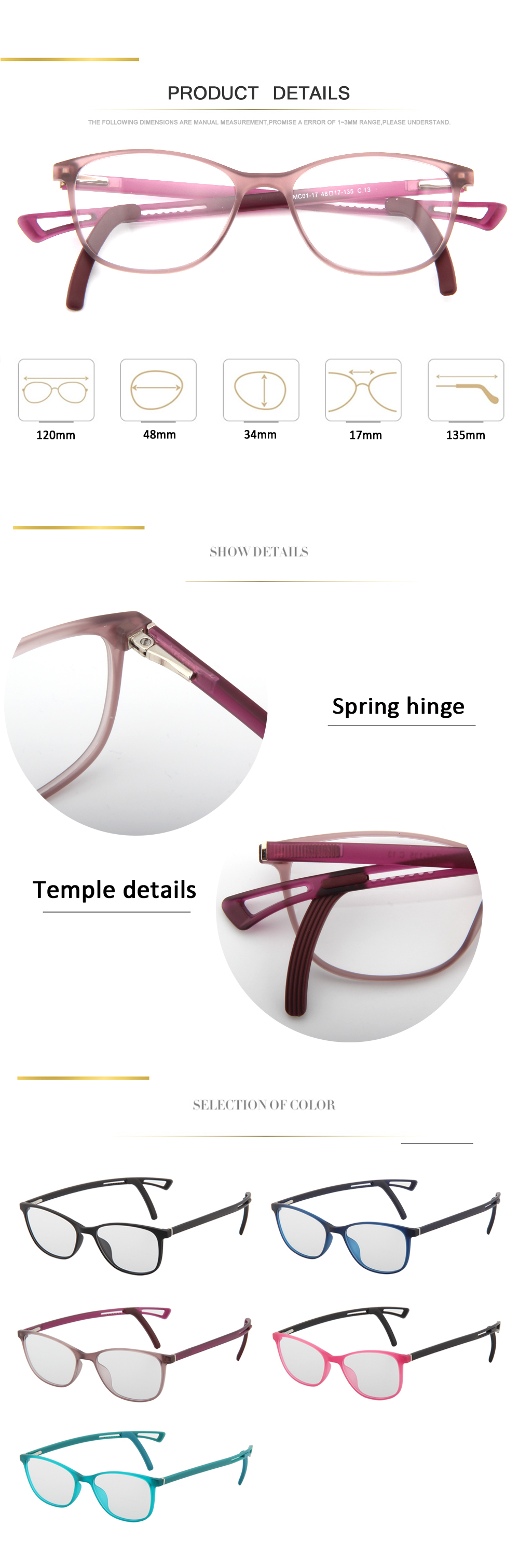 ● Optical frames material: TR90